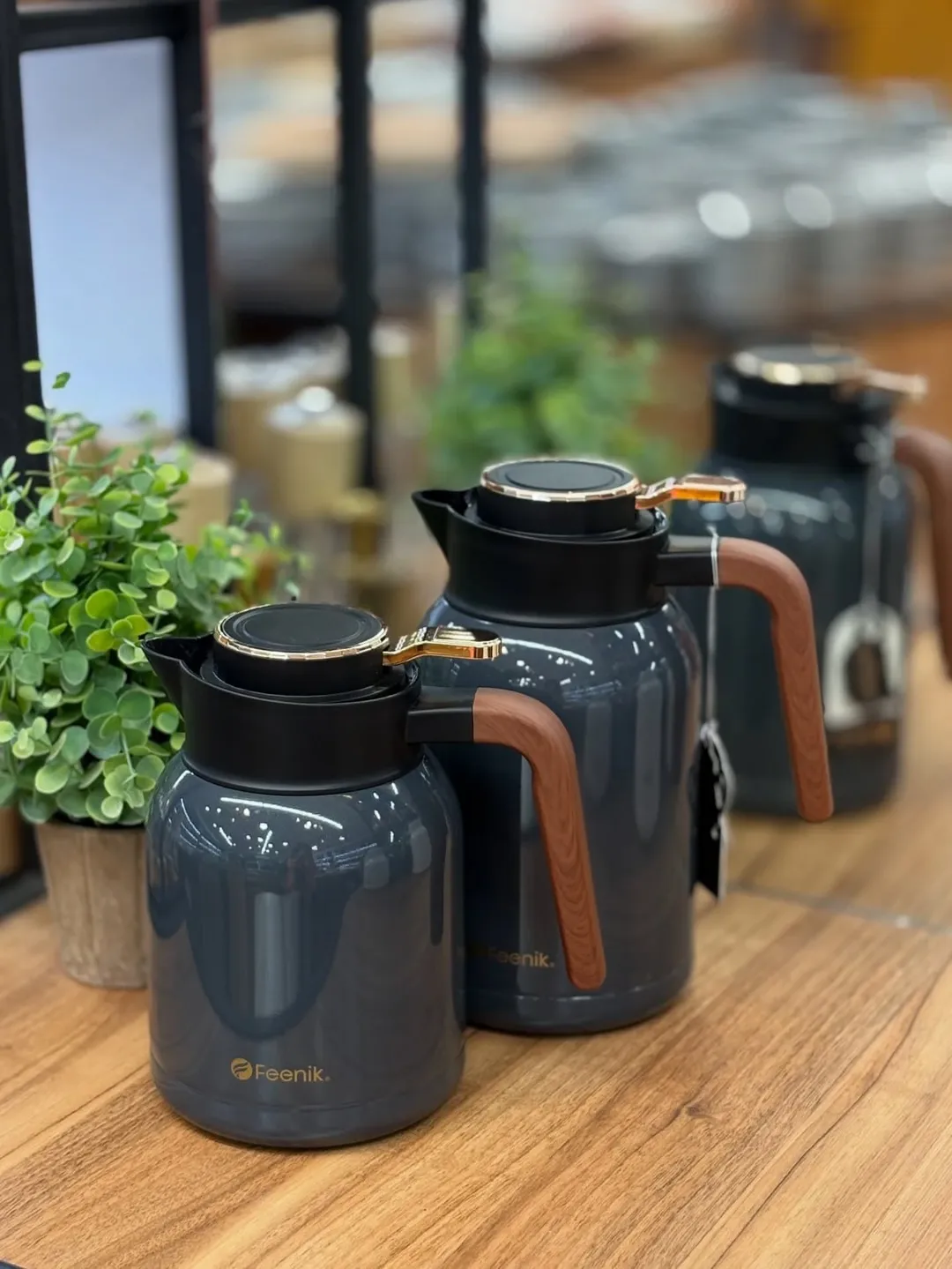 شیک ترین فلاسکی که میتونی تو جهیزیهت داشته باشی فلاسک فینیک شیشهی استیل مات۳۰۴ بدنهی فلزی نگهداری دما ۱۲ساعت جعبه دار صد در صد اورجینال وارداتی سایز یک و نیم لیتری: سایز دو لیتری: ۱۸۵۰ ارسال به
