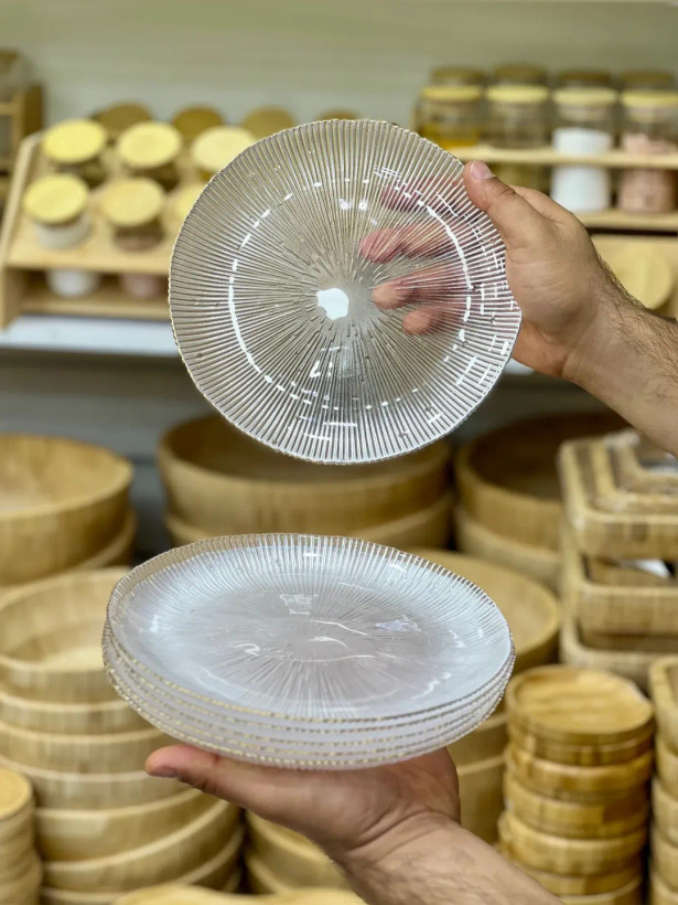 ست پذیرایی بلور با کیفیت فوق العاده شامل بشقاب میوه خوری، رولت خوری و بیسکویت و شیرینی خوری با ابعاد و اندازههای مختلف.