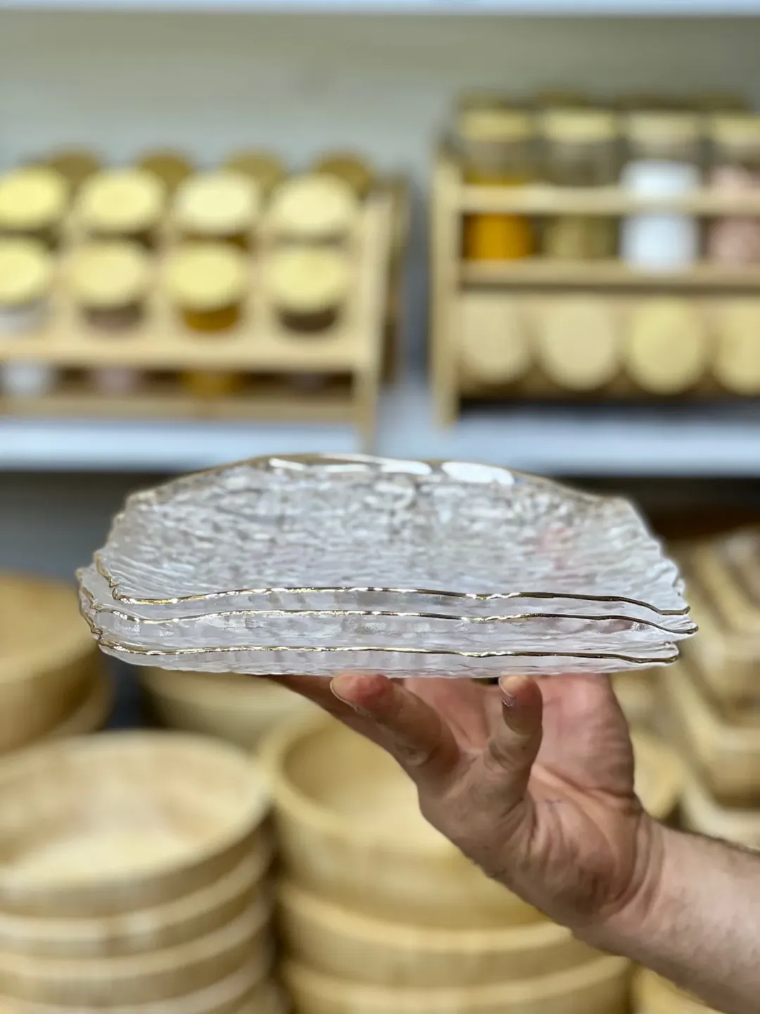 ست پذیرایی بلور با کیفیت فوق العاده شامل بشقاب میوه خوری، رولت خوری و بیسکویت و شیرینی خوری با ابعاد و اندازههای مختلف.