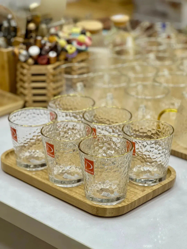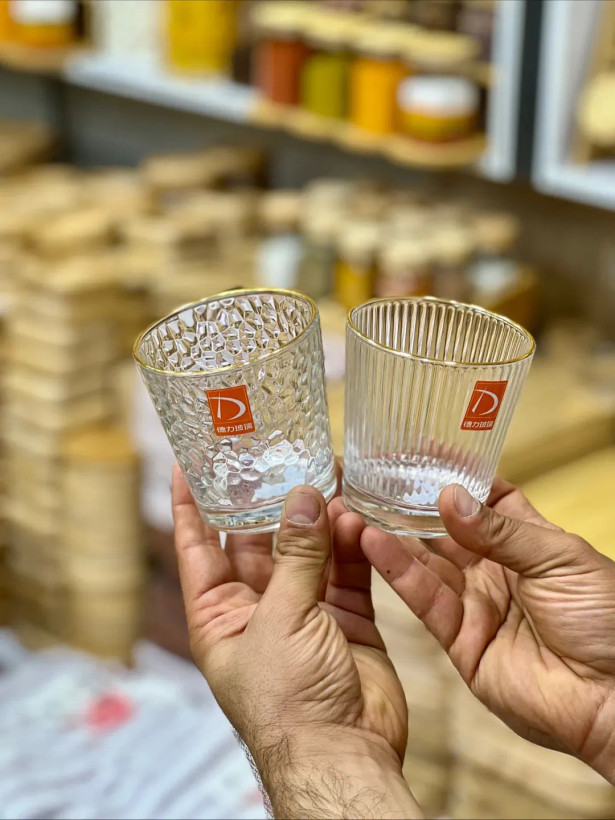 لیوان های بلور وارداتی در دو طرح خاص برفی و راه راه دورطلا و ساده شاف ضخیم و با کیفیت