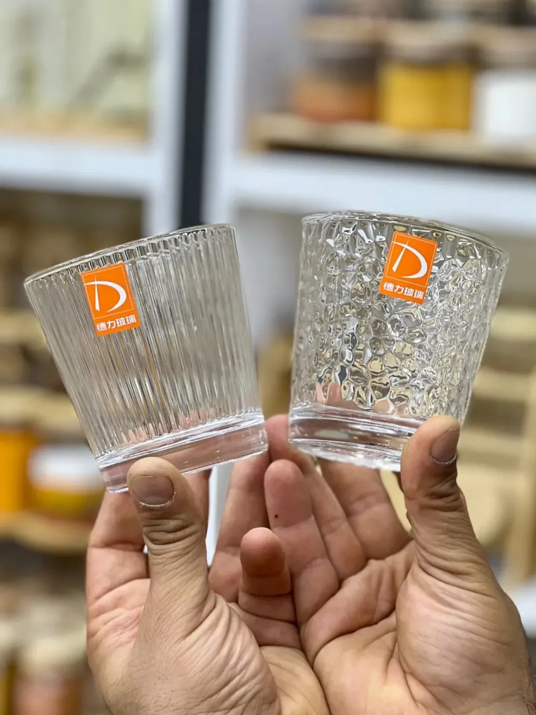 لیوان های بلور وارداتی در دو طرح خاص برفی و راه راه دورطلا و ساده شاف ضخیم و با کیفیت